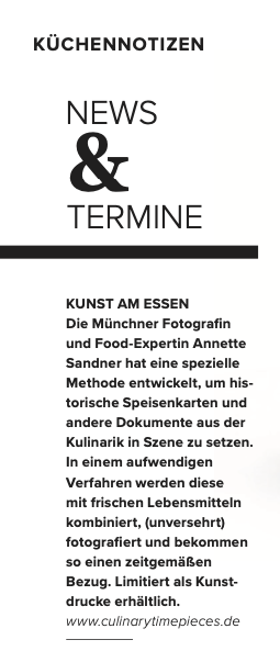 Presse-Erwähnungen und Artikel über die culinary timepieces by Annette Sandner