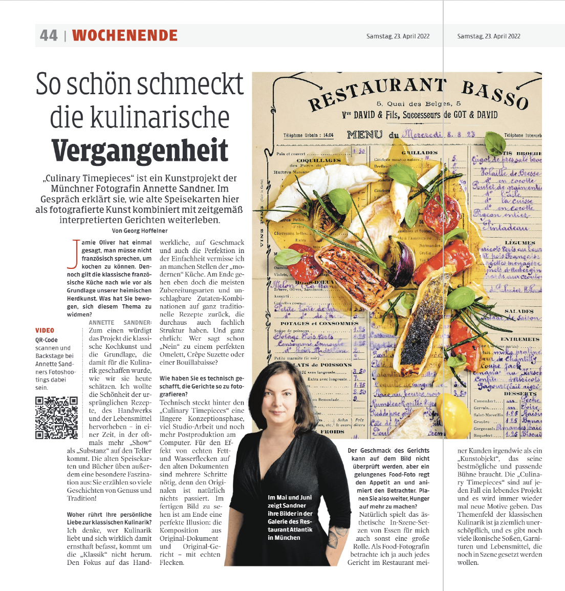 - Süddeutsche Zeitung, 04.05.2022: Bilder, die Lust aufs Genießen machen